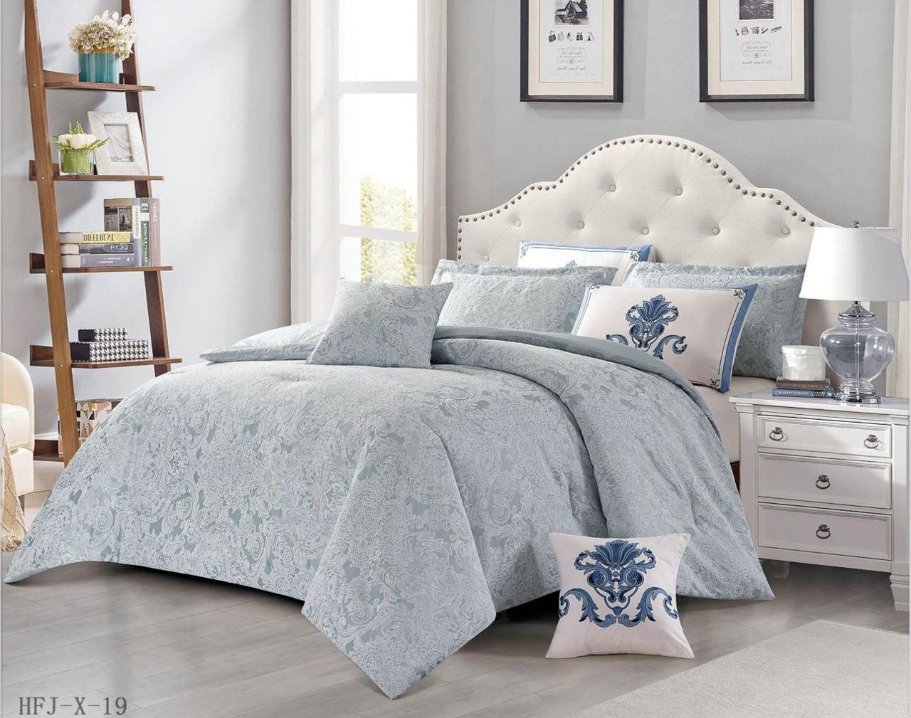 A refined damask floral pattern in soft blue-grey tones, featuring elegant swirling motifs that add depth and sophistication. The design blends traditional charm with a fresh, modern color palette, making it ideal for both classic and contemporary bedrooms.