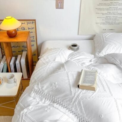 The design is enhanced with a fringe border, adding a unique and stylish detail to the overall appearance. The soft and cozy fabric ensures a comfortable and restful night’s sleep, making this set a perfect addition to your home decor.