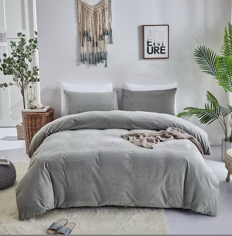 Be the first to review “Modern Milk Wool Fabric Bedding Set Grey – Queen”