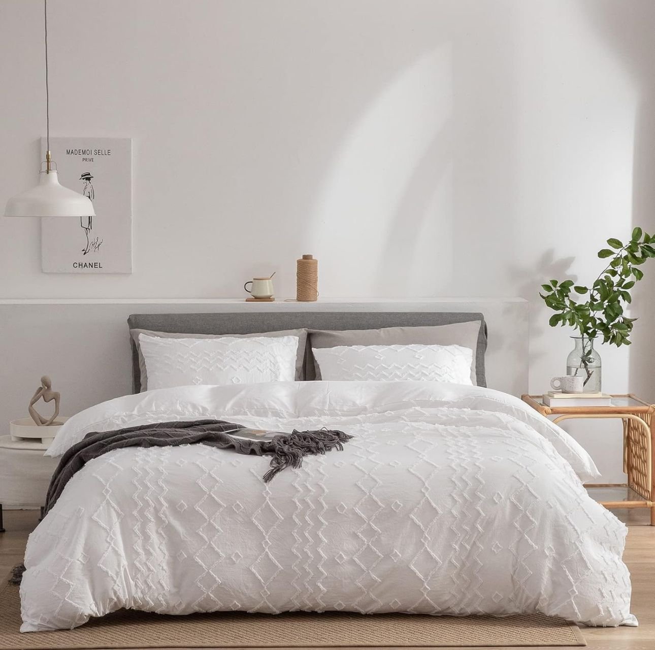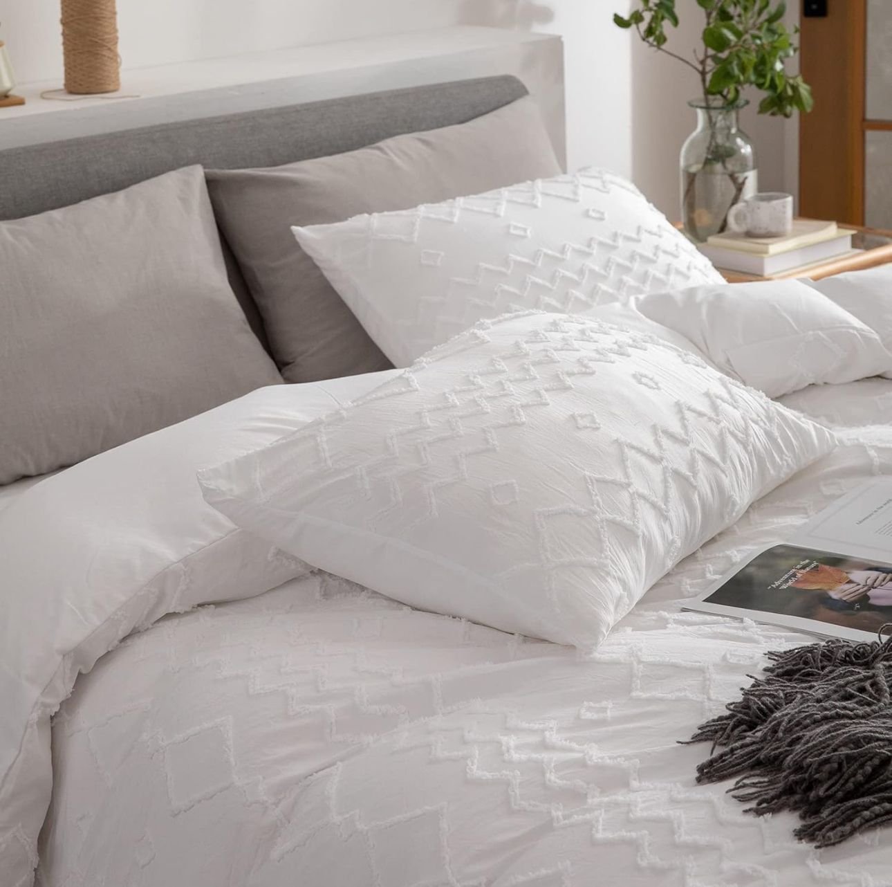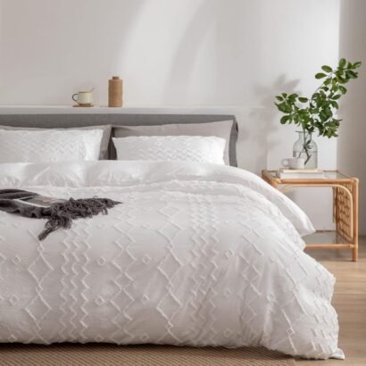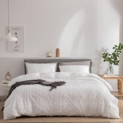Boho Tufted Bedding Set for All Seasons, Soft Microfiber Bohemian Embroidery Shabby Chic Style Lightweight Comfortable