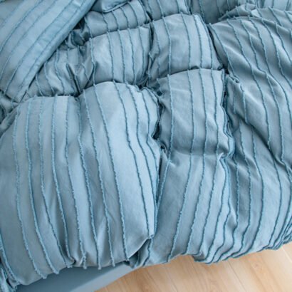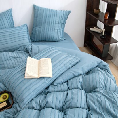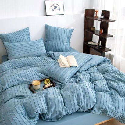 Crafted from high-quality microfiber, this bedding set provides exceptional softness and durability, ensuring a restful and comfortable night’s sleep. The soothing blue color, enhanced by delicate striped patterns, adds a touch of modern elegance and texture to your bedding ensemble.
